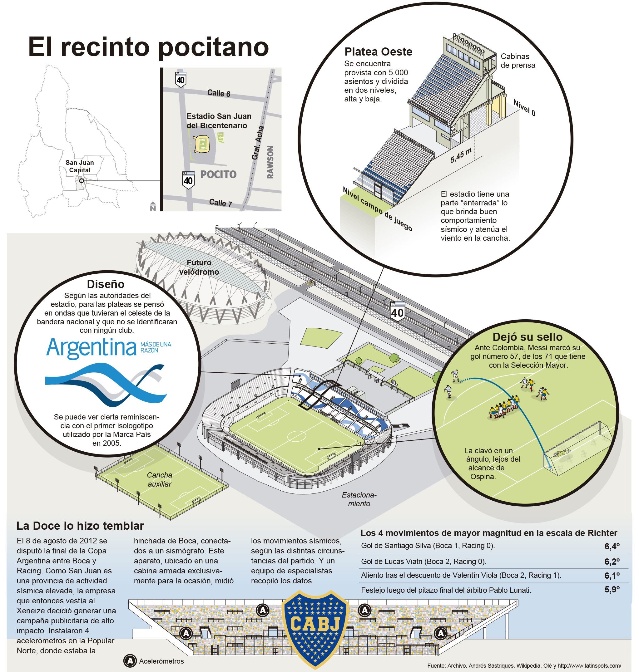 Para el complejo deportivo se destinó un terreno de 18 hectáreas en el departamento Pocito, a un costado de la ruta nacional 40, entre calles 6 y 7.