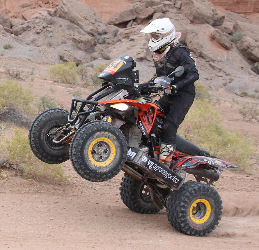 El primer parcial fue tan duro, que entre las caídas hubo dos muy importantes y sus protagonistas sufrieron fracturas. El del cordobés Giuliano Giordana en cuatriciclos (foto) tuvo fractura expuesta del antebrazo derecho y una luxofractura del tobillo. Fue rescatado por el helicóptero de la organización y trasladado luego a una clínica céntrica, en la que ayer fue operado.