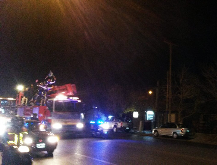 Casi que a paso de hombre, la autobomba avanzó entre la multitud. El recorrido, que se emprendió sobre Ruta 40 (frente al Bicentenario), llegando a Calle 6. Pero la locura total y la mayor convocatoria se dio cuando el camión de Bomberos llegó a calle Mendoza y llegó a Calle 5. Rawson estaba en la calle, casi literal.