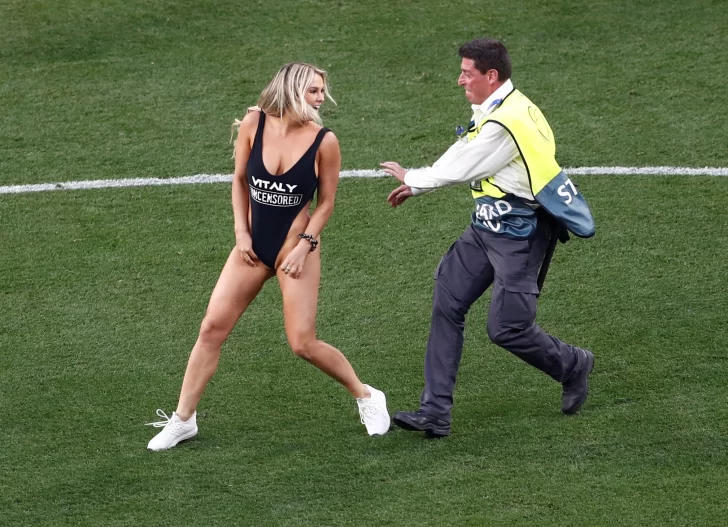 Ojo: la circunstancia duró poco porque el personal de seguridad la interceptó en la mitad de la cancha, obligándola a retirarse del césped del estadio. Y claro: tras ello, la final continuó.