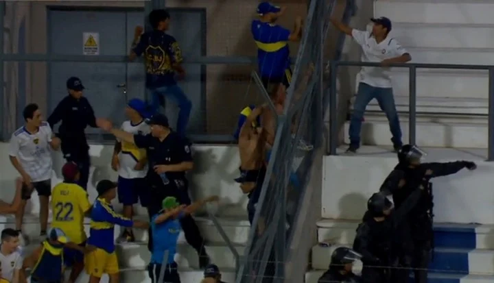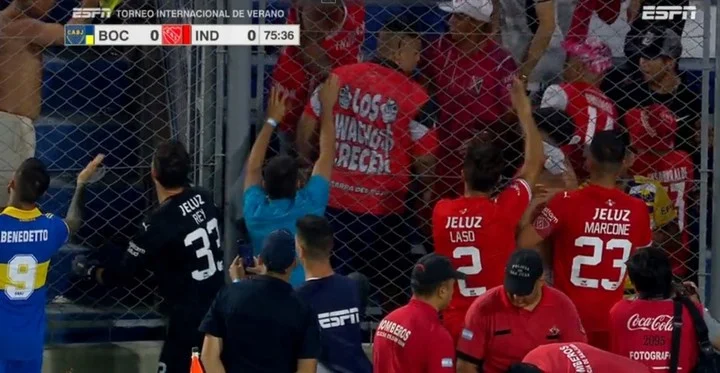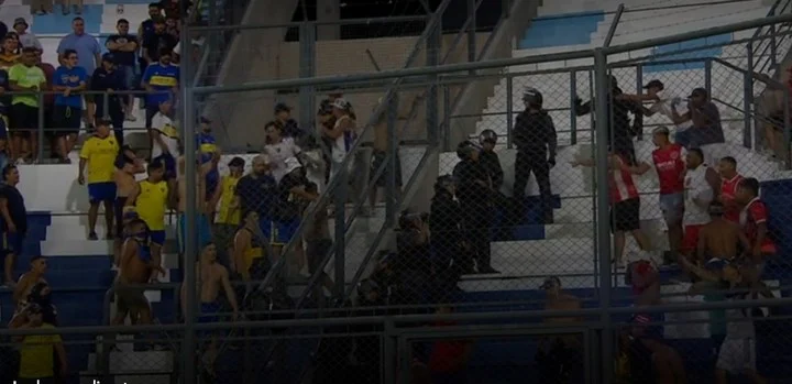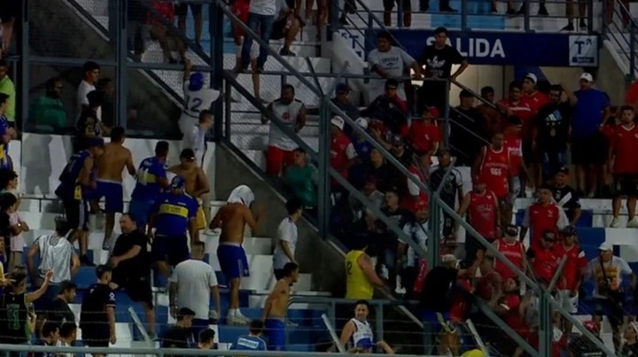 Una imagen lamentable en el regreso del fútbol argentino. Hinchas de Boca e Independiente protagonizaron incidentes en las tribunas del Estadio Bicentenario de San Juan mientras se disputaba el amistoso que finalmente terminó en empate 0 a 0.