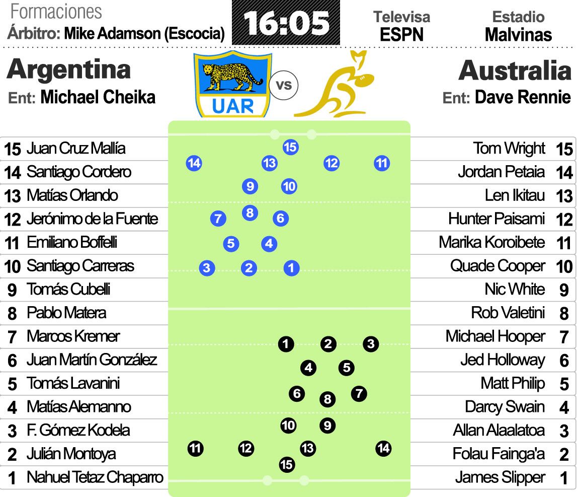 El seleccionado argentino de rugby, Los Pumas, se medirá hoy (16.05 horas, por ESPN) frente a su par de Australia, en el inicio de la décima edición del Rugby Championship, torneo en el que también participan Nueva Zelanda y el campeón del mundo Sudáfrica.