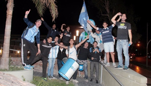 Sin embargo, con bombos, banderas y a puro canto, los simpatizantes esperaron ansiosos a sus ídolos en la puerta del Del Bono Park y se fotografiaron con cada uno de ellos.