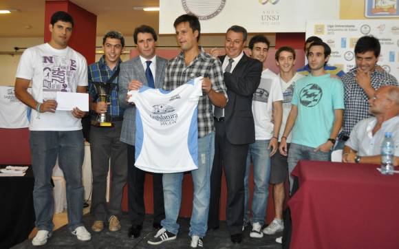 En un acto realizado en el hall central del rectorado de la Universidad Nacional de San Juan, el vicegobernador de la provincia, Sergio Uñac y el rector de la alta casa de estudios, Oscar Nasisi compartieron junto a otras autoridades la entrega de premios de la Liga Universitaria de Fútbol 2012, la que fue auspiciada por la Legislatura Provincial.