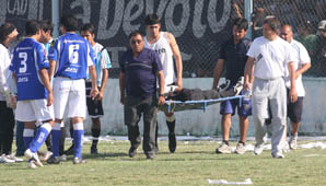 Este año se vivió algo similar en Villa Krause. En el clásico entre Unión y Trinidad, el pasado 2 de mayo, el arquero del León Andrés Lavorante tuvo que ser internado luego de que una bomba de estruendo le cayera cerca de su humanidad. El “Oso” estuvo inconsciente durante un tiempo prolongado, por lo que tuvieron que llamar a una ambulancia (no había ninguna en el estadio) para llevarlo al hospital Rawson.