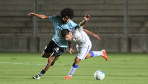Desordenados y a los pelotazos, los jugadores de el Azul jugaron los primeros 45 minutos. Sin embargo, los mendocinos no supieron aprovechar el momento para sacar ventaja.