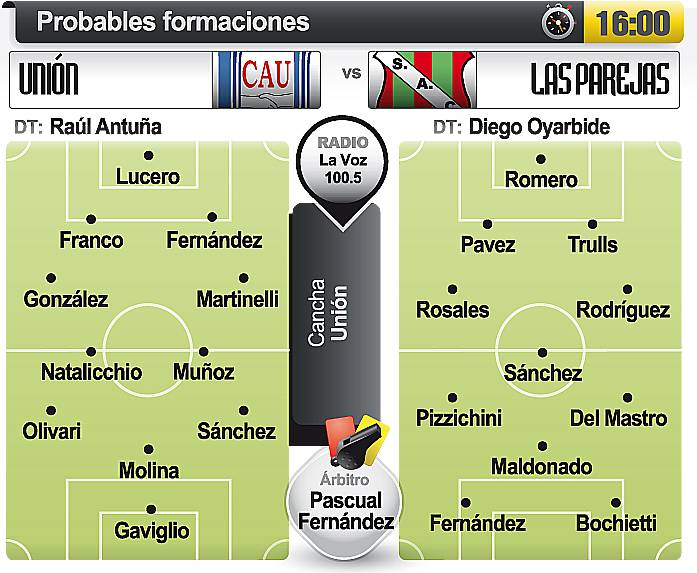 No será sencillo. A esta altura del torneo, todos juegan por algo y la reacción de los últimos partidos de Sportivo Las Parejas también lo han colocado en ese umbral en donde debe ganar para aspirar a clasificar. En Unión, el modelo es el mismo, el camino es el mismo y la frase es la misma: van partido a partido. Entre las novedades salientes se espera el regreso de Leonel Natalicchio en el mediocampo como única modificación en un esquema que para Antuña y toda su gente sale de memoria.