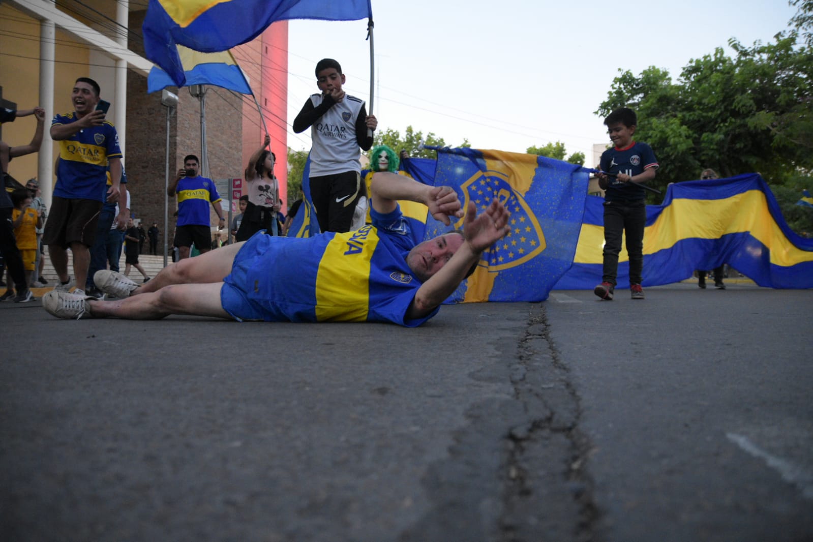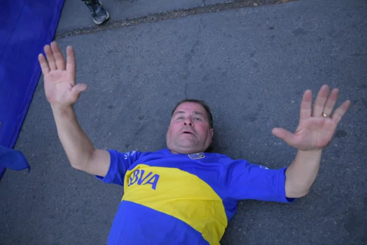 El hombre, completamente vestido con los colores azul y oro, rodó unos 100 metros por la calle Mendoza ante la sorpresa de los cientos de hinchas que celebraron una nueva conquista del club de La Ribera.