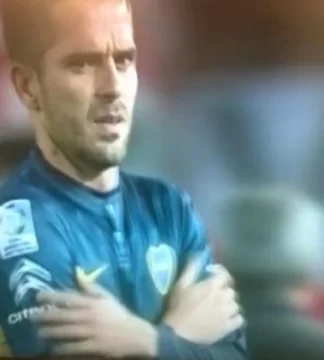 Cuando se terminaba el primer tiempo, el mediocampista de Boca aparentó "tener frío" de cara al público del Millonario.