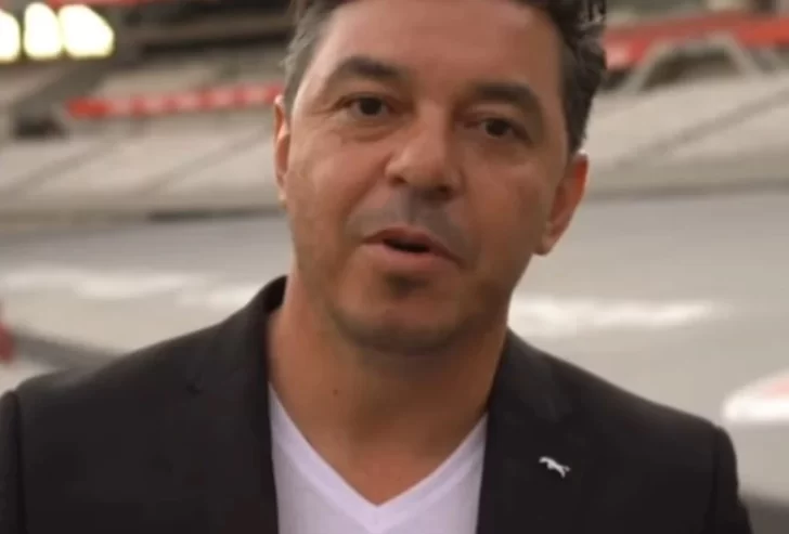 Con una remera blanca, un saco y la camiseta de River en la mano, el entrenador, con el Monumental de fondo, expresó: "Buenas tardes a todos, este es un mensaje para todos los hinchas de River. Primero que nada, agradecer por todo el cariño y apoyo durante estos años. Soy un agradecido de todo corazón por tanto cariño. Segundo, desearles unas lindas fiestas, una feliz Navidad y un grandísimo Año Nuevo y que sean felices. Saludos para todos, nos vemos el año próximo con todo".