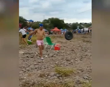 Después, un vehículo perdió una de sus ruedas que salió desprendida con violencia. En un video puede observarse como la gente sale corriendo para evitar el impacto. Entre los asistentes que estuvieron en peligro había varios niños.