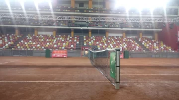 En un puñado de días, el parqué donde se juega habitualmente hockey sobre patines, el vóley o el futsal en el estadio Aldo Cantoni pasó a convertirse en una gruesa capa de polvo de ladrillo que permitirá jugar tenis de alto nivel, ni más ni menos que la Copa Davis.