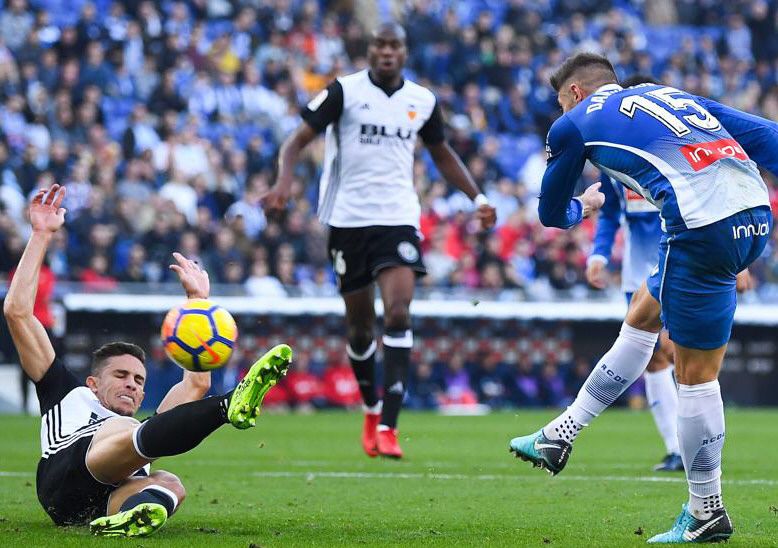 No para. El ataque del jugador del Espanyol no tendrá buen final. Valencia le ganó 2-0 de visitante y sigue en la segunda ubicación detrás del Barcelona.