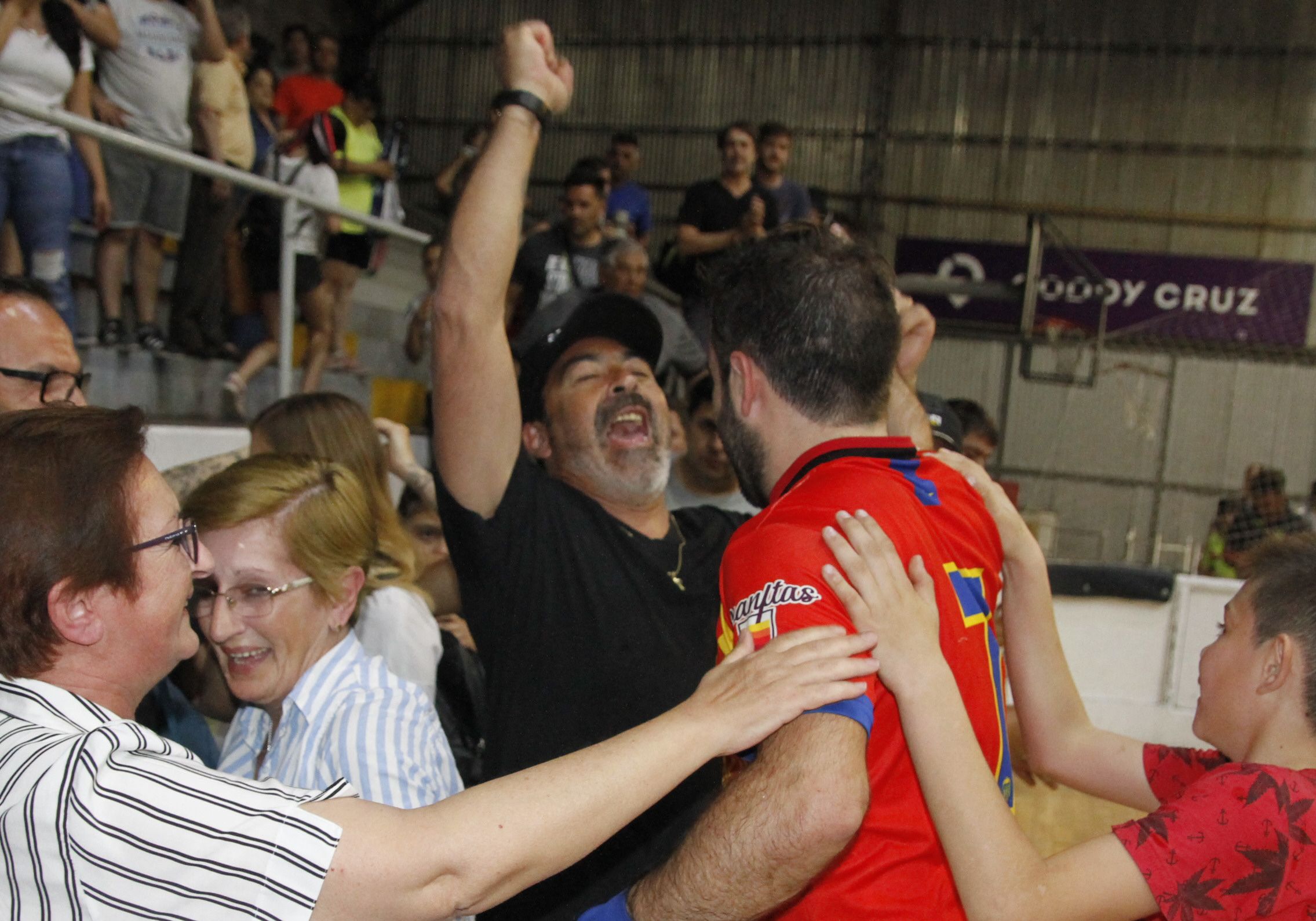 Loco festejo. El del Pony Romero que prepara su abrazo con Leandro Rosselot y Facundo Ortiz. La Barraca, un equipo bien balanceado y eficaz al máximo.