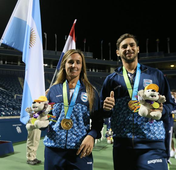 María Irigoyen y Guido Andreozzi, ganadores de la medalla de oro en el doble mixto de tenis en los Juegos Panamericanos a última hora del miércoles, se mostraron exultantes por el logro y coincidieron en estar ‘felices por el equipo‘. “Al principio parecía injusto jugar cuatro partidos en un día, como tuvimos que hacer hoy (por el miércoles), pero por suerte salió bárbaro. No me acuerdo de haber jugado tanto y con tanta tensión, pero salió increíble y lo tenemos merecido”, aseguró Irigoyen, quien está disputando sus segundos Panamericanos.