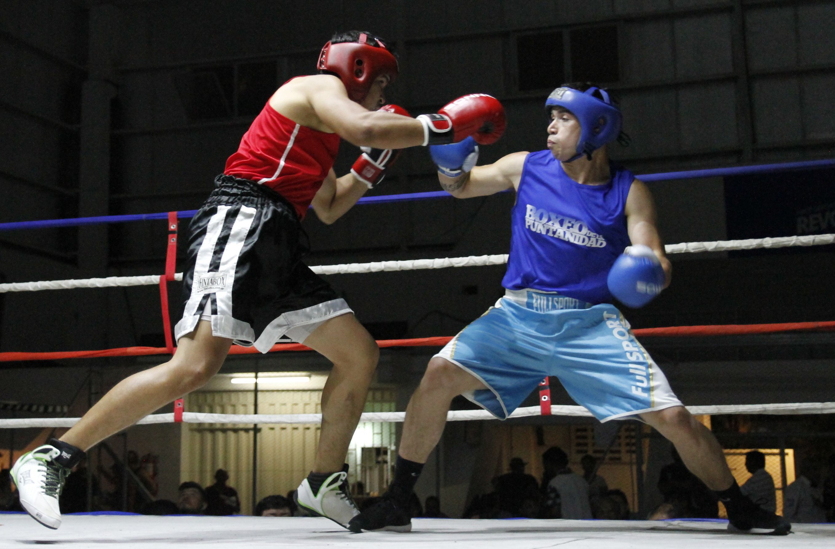 El puntano Ureta (azul) venció por puntos en un intenso combate al misionero Jorge Villalba. Anoche había programadas 20 peleas, 11 de ellas se habían realizado hasta el cierre de esta edición. Esta tarde, desde las 19 se llevarán a cabo la peleas semifinales en todas las categorías.
