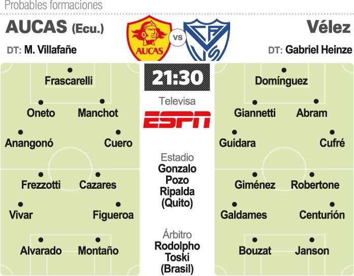 Vélez Sarsfield intentará hoy asegurarse el pasaje a una siguiente instancia de la Copa Sudamericana de fútbol cuando enfrente a Aucas de Ecuador, en la altura de Quito.