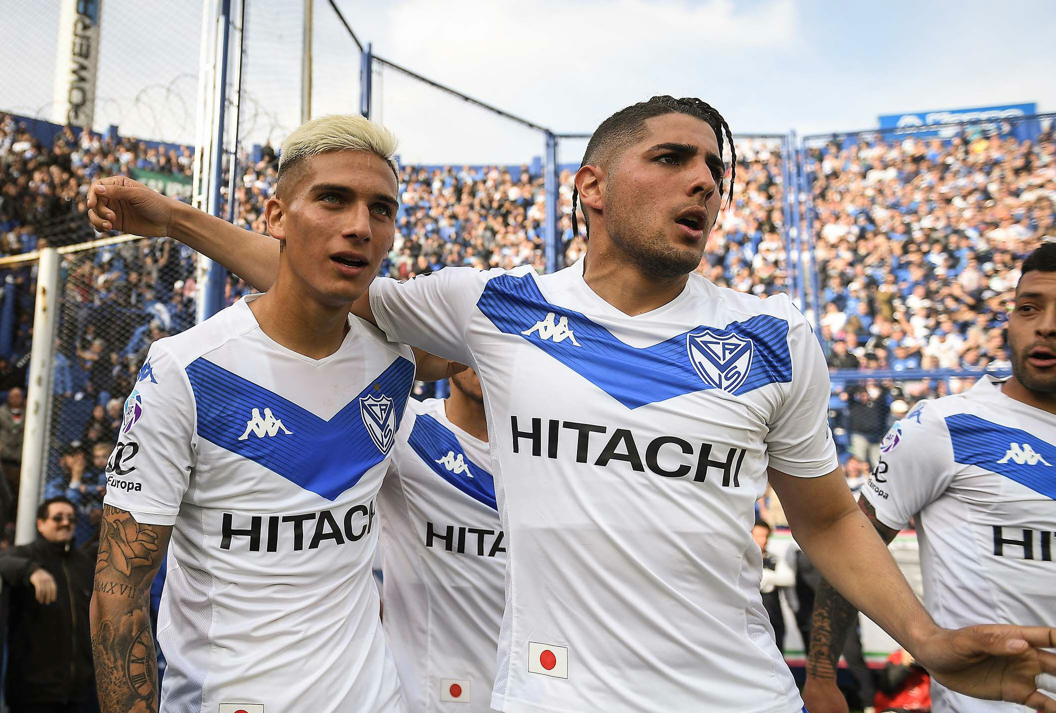 Festejo velezano. Los jugadores del Fortín celebran luego de uno de los goles ante Newell"s. Buen triunfo del equipo de Heinze.