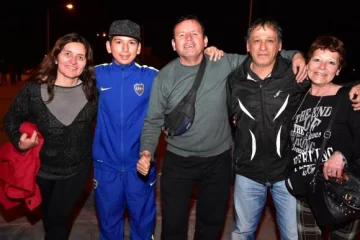 San Juan, 19 de agosto.- Mario Orona, Kevin y Héctor Sandoval, María Elena Aguilar y Gladys son fanáticos de Boca y viajaron desde Campana, provincia desde Buenos Aires, para ver a Boca en el Bicentenario.