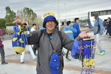 San Juan, 23 de octubre.- Entre todos los vendedores ambulantes que aprovecharon la multitud en el Bicentenario se destacó Vicente Carrizo, un sanjuanino fanático de Boca que se dedica a la comercialización de merchandising xeneize.