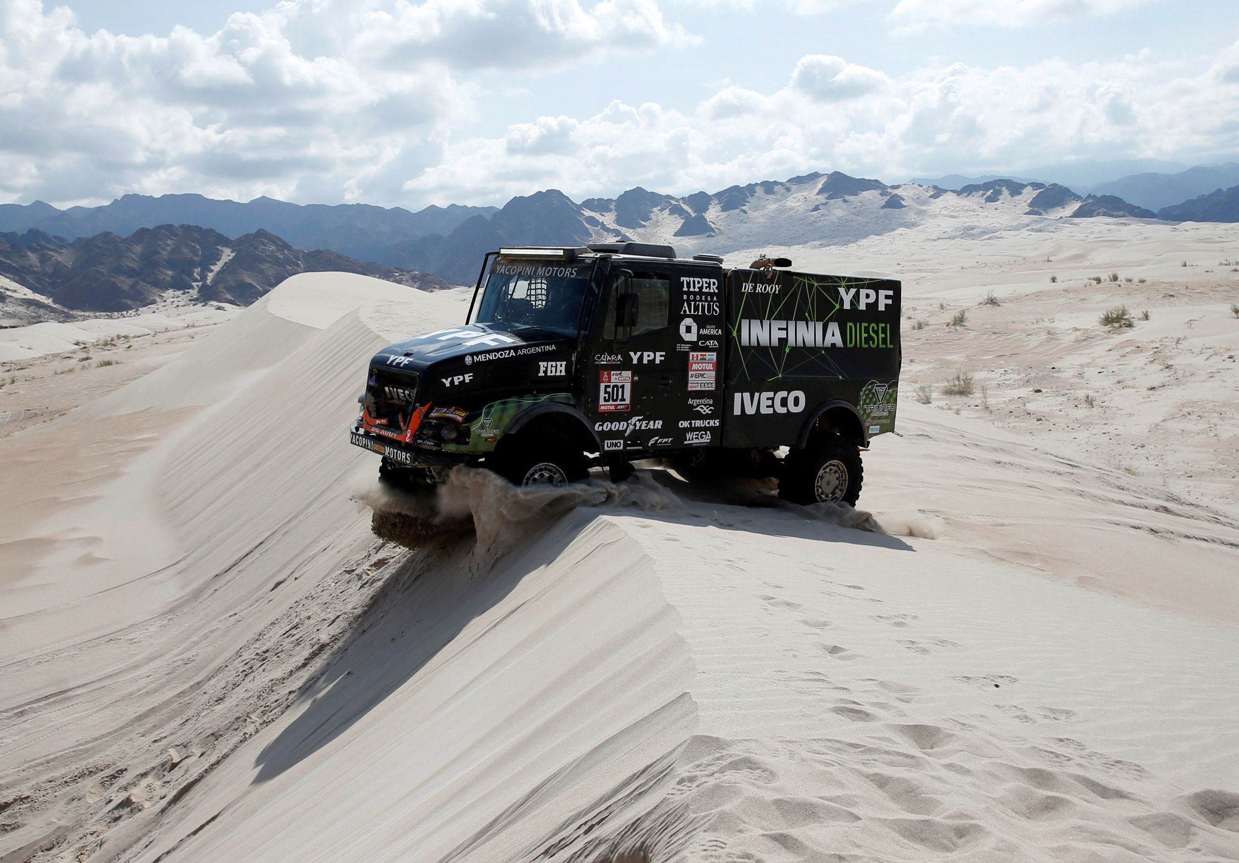 El clásico tramo del Dakar desde que desembarcó hace 10 años en Sudamérica es el que se corrió ayer con paso por el desierto de Fiambalá, terreno que reúne características muy exigentes para los pilotos, y fue ahí que Villagra pudo alcanzar la segunda posición en la etapa, pero tomó la punta de la general aprovechando un retraso de Nikolaev, quien dominaba desde el primer día.