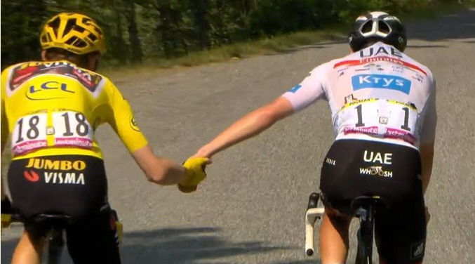 Vingegaard frenó el ritmo, en vez de aprovechar el desliz, y esperó a su oponente para mostrar el absoluto ‘fair play’ entre ambos. Una vez en línea, el esloveno agradeció el gesto y le tendió la mano para estrecharla, una foto histórica antes del duelo final con desenlace inmejorable para el Jumbo-Visma.