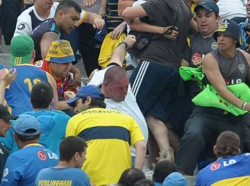 Una vez finalizado el partido, los hinchas de Boca se fueron haciendo gestos obscenos hacia los de River que desde las alturas tiraban todo lo que tenían a mano.