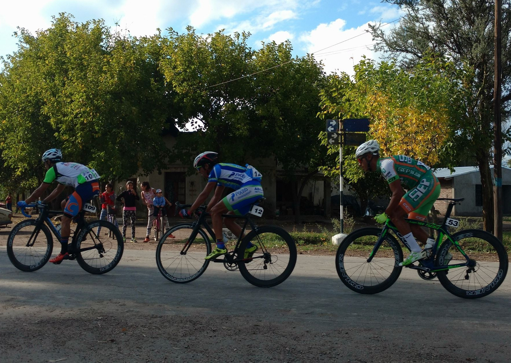 Tal como se preveía el segundo parcial tuvo una definición en llegada masiva, aunque durante gran parte de la etapa los ataques se sucedieron, como el de la foto de abajo, donde Maximiliano Navarrete, Pedro González y Darío Álvarez sacaron unos metros a su favor.