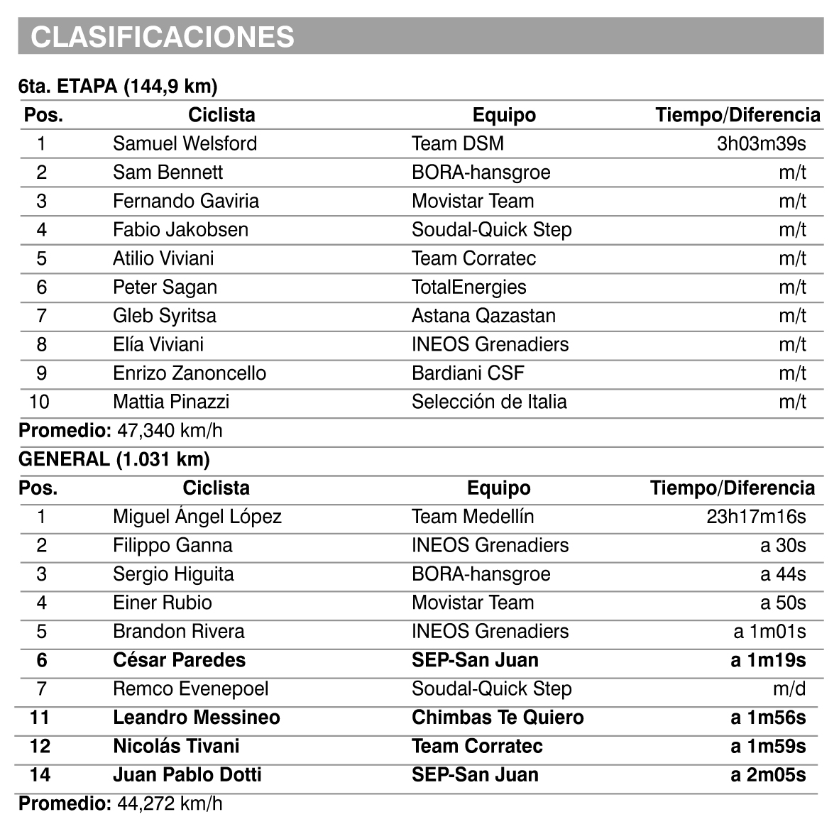 Al pasar por el Campo de La Bebida, se había reducido a 2m10s. Al entrar a Pocito por Av. Joaquín Uñac, la brecha era de 1m02s., pero de arriba desistieron Dotti y Lourenço.