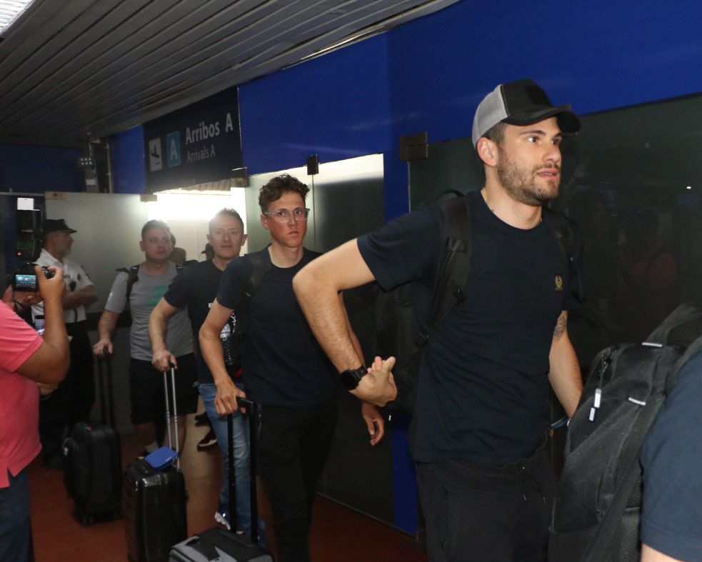 Tras una veintena de horas de viaje, desde Europa hasta la Argentina, lo que menos ganas tenían los ciclistas es atender a la prensa, y aunque amablemente respondían con una sonrisa cada saludo, era evidente su apuro por subir a los colectivos que los llevarían a sus alojamientos.