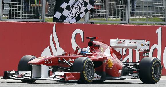 El piloto español Fernando Alonso, a bordo de un Ferrari, logró ayer su primer triunfo de la temporada de Fórmula 1 al imponerse en el Gran Premio de Inglaterra, que se corrió sobre 52 vueltas al autódromo de Silverstone, por la novena fecha del Campeonato Mundial.