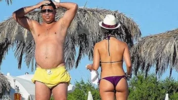 Descansando en Ibiza, junto a su madre y su pareja, el ex jugador se mostró relajado y sin ningún tipo de problemas en mostrar su incipiente panza.