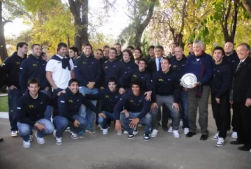Por tercera vez Los Pumas jugarán en San Juan y ayer por la tarde pisaron este suelo para el Test Match de mañana, ante su par de Italia, a las 15.40 en el Estadio del Bicentenario, para un juego crucial en sus aspiraciones de seguir creciendo en el rugby mundial con su inclusión en el “rugby championship”. Sin el agobio de la gente en el aeropuerto, la Selección argentina llegó en avión e inmediatamente se trasladó a la Casa de Gobierno donde los recibió el gobernador José Luis Gioja, para darles la bienvenida y desearles suerte, mientras que Los Pumas se lo retribuyeron con una plaqueta.