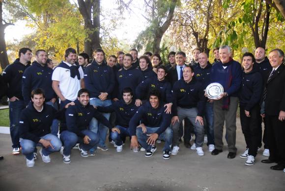 Los 24 jugadores y el cuerpo técnico fueron saludados personalmente por el gobernador, quien luego les contó la historia y el porqué de las dimensiones de la sala Rodolfo Colombo, donde los recibió. Luego los referentes de Los Pumas, el capitán Felipe Contepomi y el entrenador Santiago Phelan, tomaron la posta en representación del grupo.