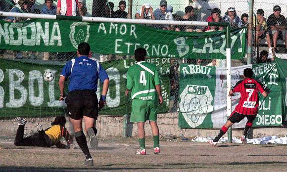 Apenas se estaban acomodando y Andrés Pastoriza metió un tiro libre perfecto para silenciar al Barrio Cabot, 1-0. Pero de la mano de Luján, que hizo la pausa en el medio y la guapeza de Quiroga arriba, el Verde se encontró. El mismo Quiroga la picó sobre Lavorante y Gallardo la sacó en la línea. Un minuto más tarde el nueve entró al área y Villegas lo agarró. Penal para Arbol Verde, Luján se encargó se igualar las cosas, 1-1.