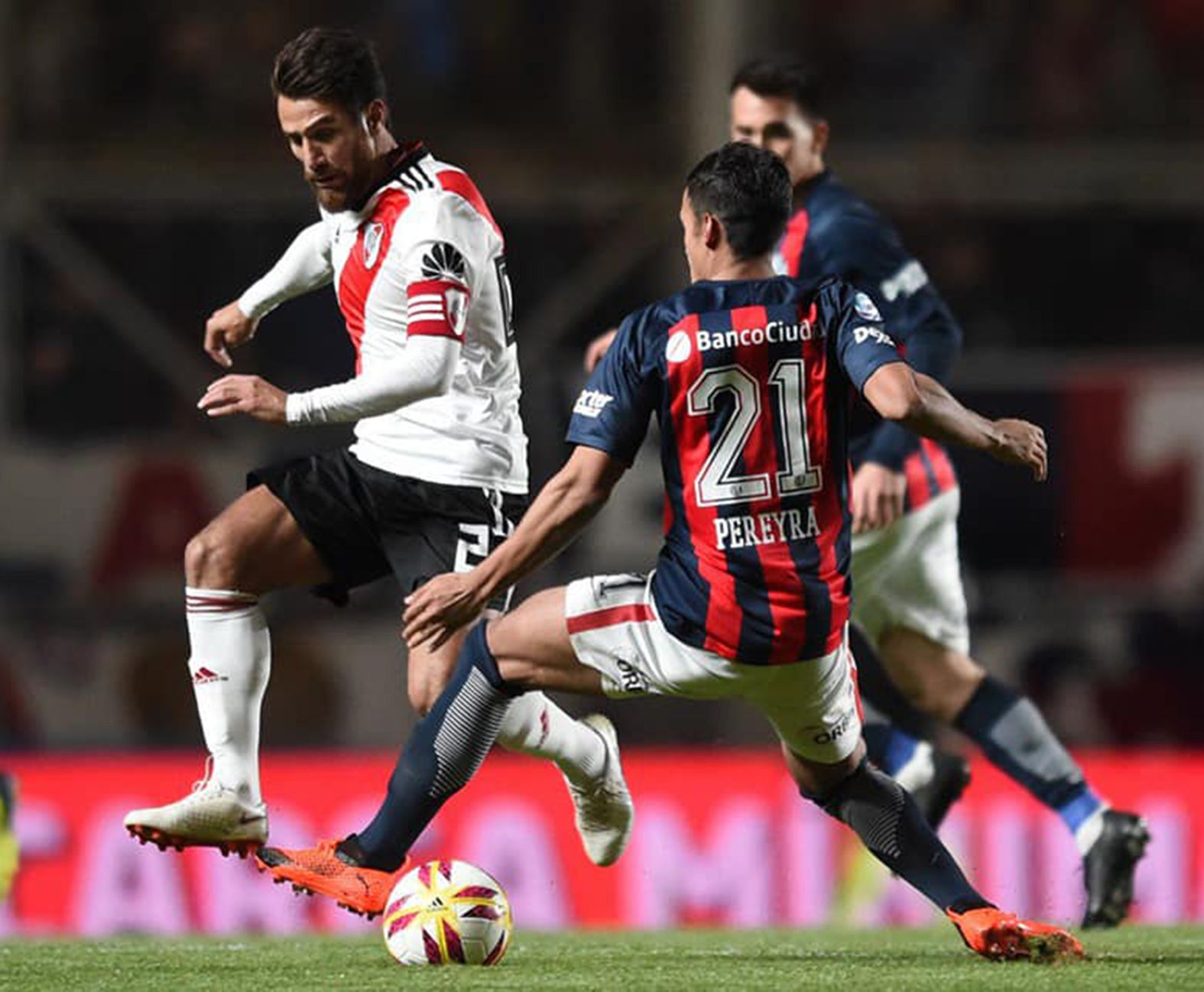 El encuentro arrancó con acción: a los 3 minutos Nicolás Reniero realizó una buena maniobra personal que no terminó en gol por la gran respuesta de Franco Armani. Inmediatamente, Juanfer Quintero habilitó a "Nacho" Fernández, quien la tiró al medio. Rafael Santos Borré la aguantó y soltó para Lucas Pratto, quien remató cerca del poste.