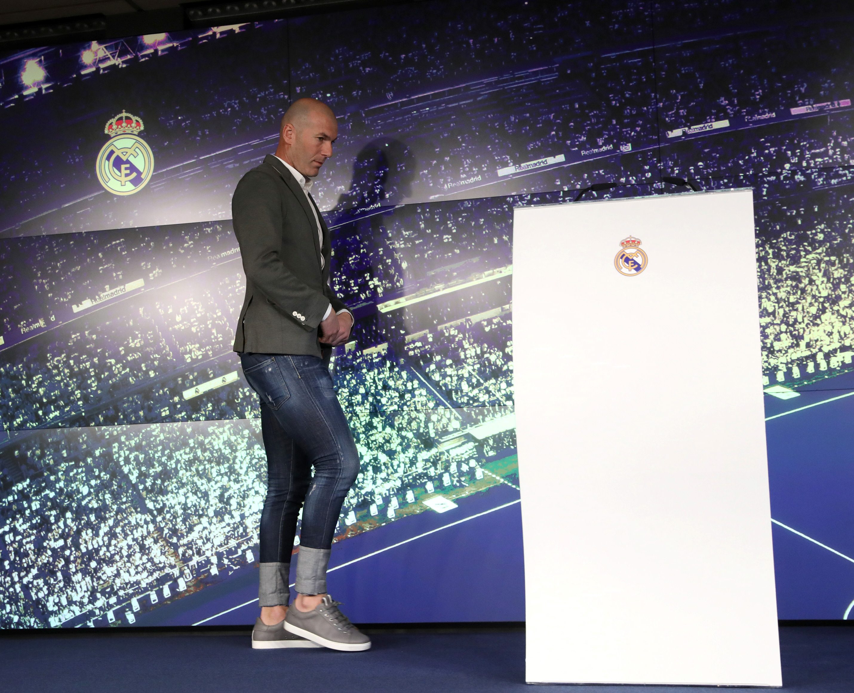 Regreso. Zinedine, quien se mostró en su presentación con un look muy informal, asumió de nuevo como entrenador del Madrid.