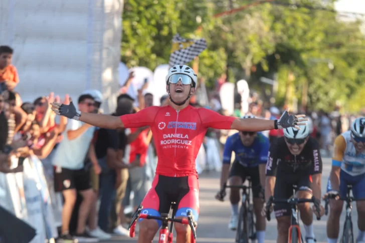La definición llegó en los giros finales al circuito urbano de Chimbas, sobre calle Mendoza y con una multitud acompañando frente a la Plaza Departamental. En el sprint decisivo, Oropel lanzó su ataque final y se quedó con la victoria de etapa, celebrando un triunfo especial ante su gente.