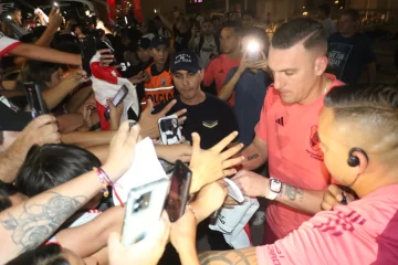 A los minutos y después de dejar sus pertenencias en el ingreso del hotel, los futbolistas se acercaron a las vallas para saludar, firmar autógrafos y camisetas y sacarse fotos con los hinchas. Se vivieron momentos de locura y también emoción por parte de los fanáticos, muchos -sobre todo los más chicos- lloraron al ver a sus ídolos.