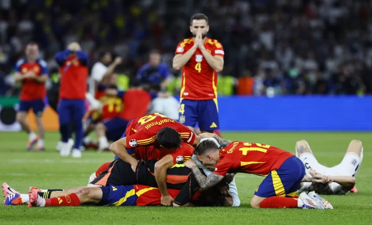 Dicen que no hay gloria sin sufrimiento. Y así lo entendió España, dado que en una de las últimas escenas Declan Rice se elevó en el área ibérica y paralizó los corazones de La Roja. Los reflejos de Unai Simón evitaron el agónico empate, aunque el rebote cayó en la cabeza de Bukayo Saka, quien volvió a buscar el arco adverso, pero no tuvo en cuenta el sacrificio de Dani Olmo. El volante se destacó como uno de los pilares fundamentales para que la Eurocopa vuelva a la tierra del jamón y las tapas. Como ocurrió en 1964 (ante la Unión Soviética), 2008 (contra Alemania) y 2012 (frente a Italia), La Roja se quedó con el trofeo más codiciado del Viejo Continente.