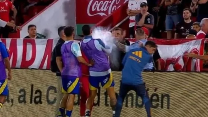 Esto provocó el reclamo de varios futbolistas del banco de suplentes azul y oro y los plateístas del conjunto local comenzaron a llenar de insultos al plantel visitante.