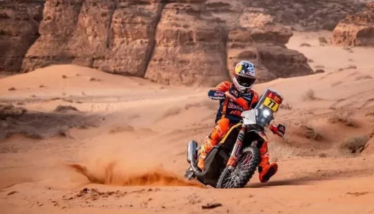 Tras pasar la noche en medio del desierto y sin asistencia externa, el Rally Dakar 2026 cumplió su quinta etapa este jueves y llegó a Hail, Arabia Saudita, con la gran noticia de la victoria parcial del argentino Luciano Benavides (#77) en motos al mando de la KTM oficial. El salteño se impuso tras un tramo durísimo en el que todos debieron cuidar al máximo lo mecánico y los neumáticos, luego de haber descansado en carpas, sin contacto con sus equipos. Y ahora quedó 3° en la general, a solo 5m55 del líder, su compañero australiano Daniel Sanders, tras un retraso importante del español Edgar Canet.