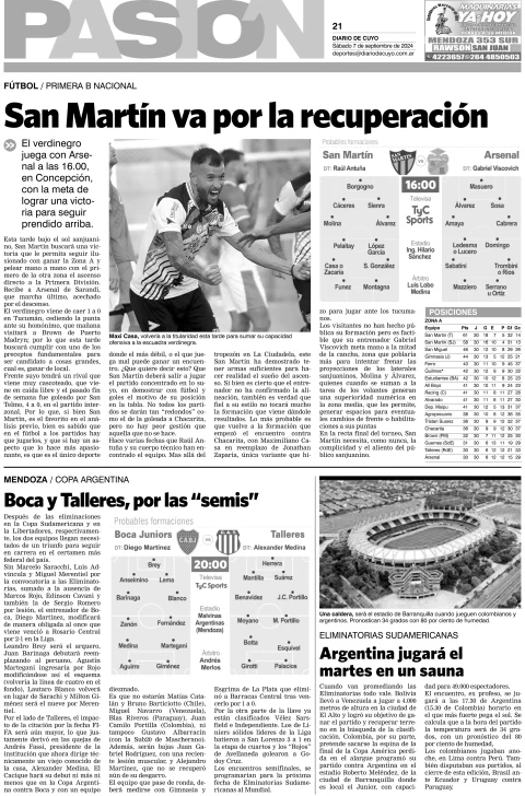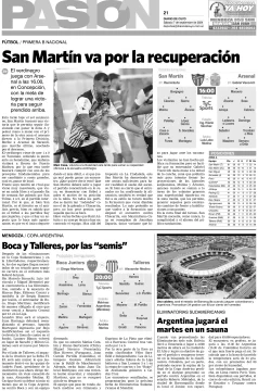 Diario de Cuyo | HOME | Pasión Deportiva Tapa Pasión 07 de Septiembre del 2024 Por Redacción Diario de Cuyo 07/09/2024 · 4:00 Escuchar la noticia Escuchar la noticia Your browser doesn’t support HTML5 audio Ver los comentarios ›