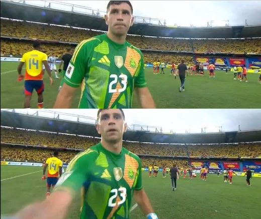 Competitivo al máximo como siempre, su espíritu entró en ebullición por no “haber podido ayudar al equipo”, como planteó en los pocos tropiezos de La Scaloneta. Además, no pudo alimentar su obsesión por las vallas invictas (acumula 34 en 47 partidos con el buzo de Argentina). En consecuencia, mientras alentaba a sus compañeros y saludaba a sus adversarios; apenas segundos después de abrazarse con Jhon Durán, vio que la cámara lo seguía como un stopper y lanzó el golpe, que rápidamente se convirtió en viral.
