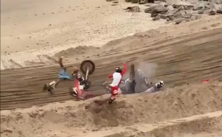 Uno de los pilotos tuvo un desperfecto con su rodado y mientras intentaba ponerlo en marcha fue embestido por otro competidor, aunque logró alejarse de la escena. Sin embargo, otros dos impactaron la moto que estaba volcada sobre la arena y también quedaron golpeados.