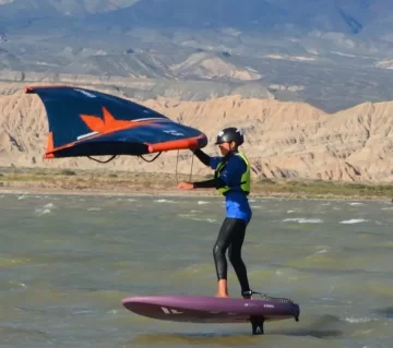 Tofa Montaño es uno de los pioneros de los deportes de viento en el dique iglesiano. Empezó hace ya varios años con el windsurf y vio también como el kitesurf se acomodó para ser el principal, incluso llegando a concretar los Mundiales en el espejo de Cuesta del Viento pero ahora, desde que decidió como proyecto personal apostar al wingfoil, hace un balance que lo sorprende: ‘Este deporte tiene cosas muy buenas que llevan a que el deportista lo adopte rápido. El porte de los elementos es más simple, menos aparatoso que el windsurf por ejemplo. El ala, el hydrofoil que es como el avioncito que toca el agua, la plataforma son fáciles de transportar. Eso ya le da ventajas sobre las otras opciones. Pero además, aprenderlo y practicarlo es más sencillo y hasta más seguro’.