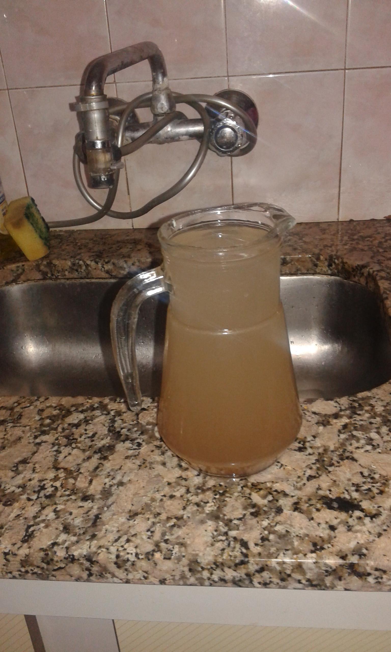Agua de Media Agua, imposible de tomar. Tiene color chocolate. Enviado por un lector que no se identificó.