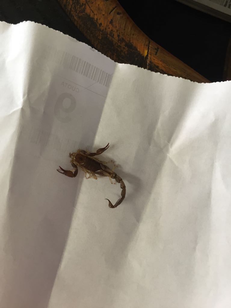 Vecinos de la Villa Pedro Echague, en Santa Lucía, están preocupados por la presencia de alacranes en sus viviendas. Una vecina dijo preocupada que "fumigaron pero por fuera de las casas". Además, afirmó que también han encontrado víboras.
