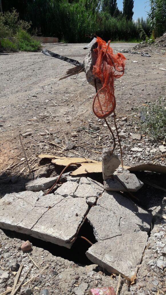 “Alcantarillas abiertas en plena calle San Lorenzo antes de Balcarce, en Santa Lucía. Hace varios días que está así y es un peligro para todos”.