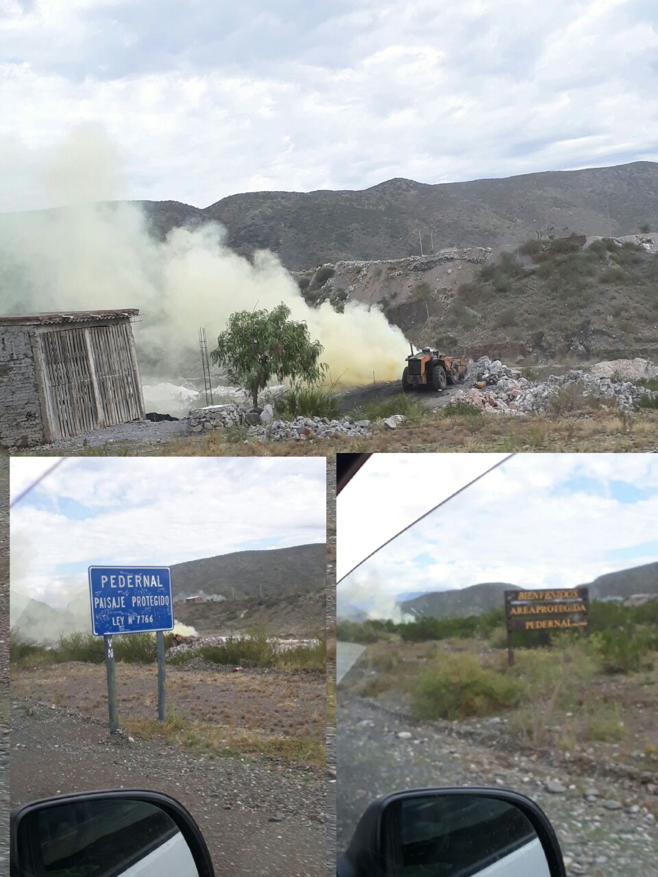 Un lector envió a DIARIO DE CUYO imágenes de cómo máquinas trabajan moviendo escombros en un área protegida y argumenta "así se respetan las leyes en San Juan…".
